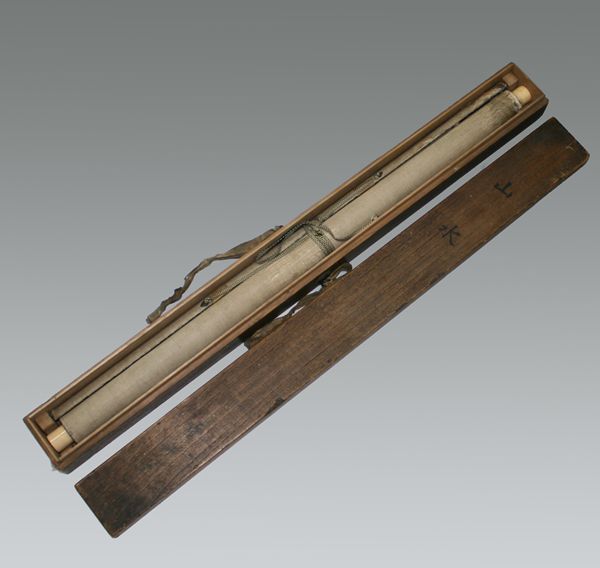 pigments. This piece is accompanied by a scroll bar with ivory ends.