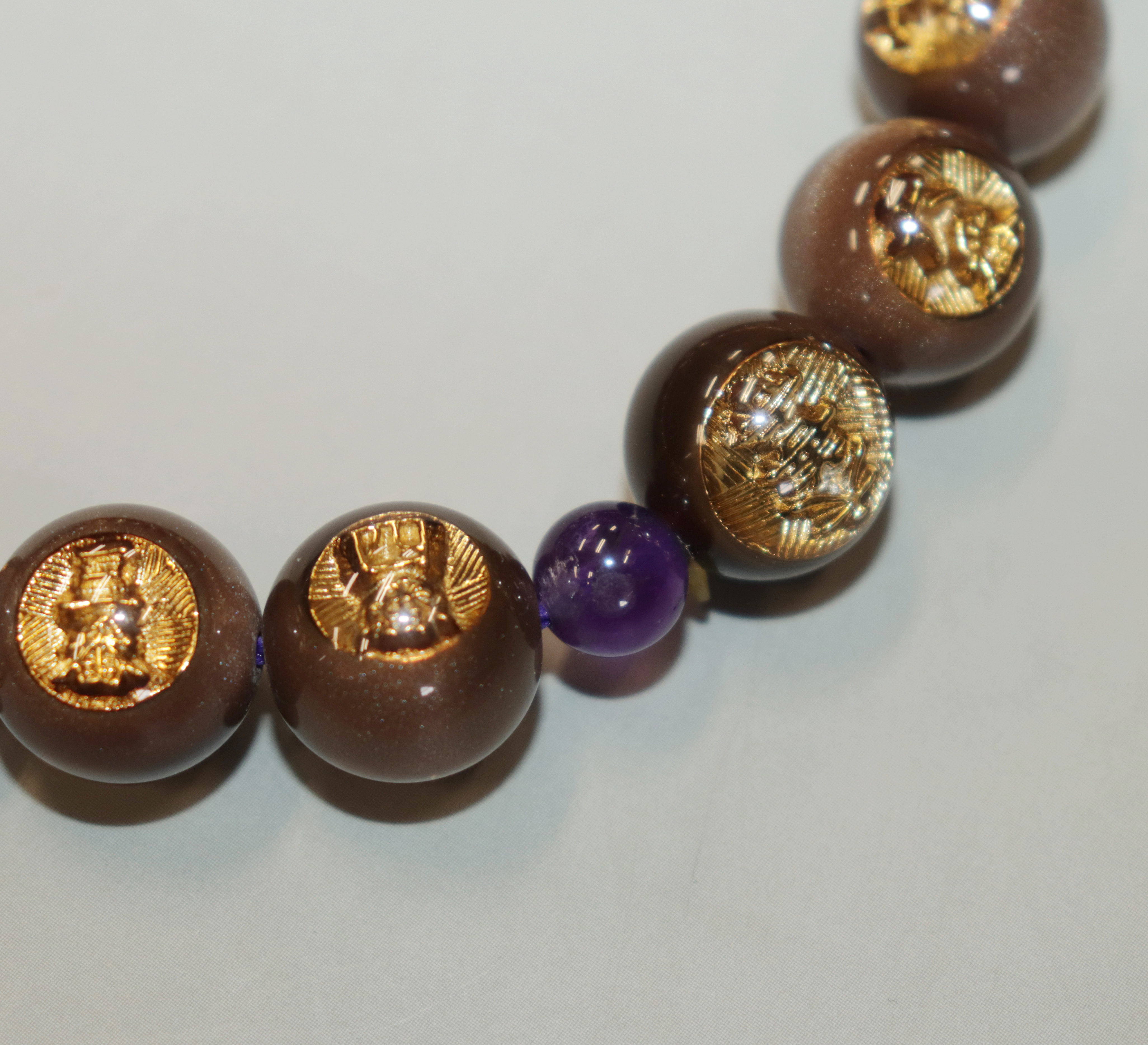 四国別格二十霊場 数珠仕立 天然石合玉入り(ラピス・紫水晶・茶水晶) (紙箱付)