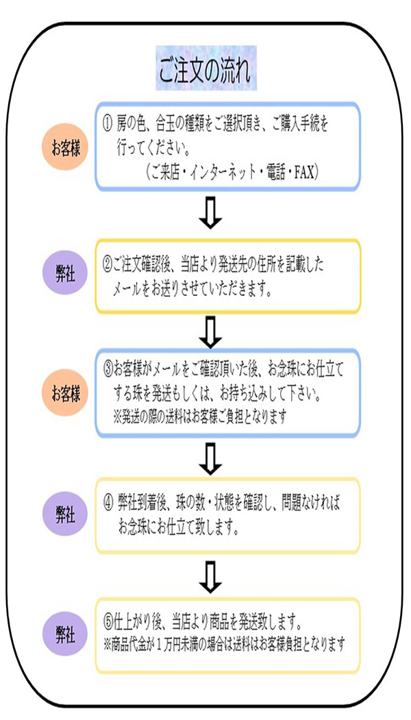 2つ以上ご注文の場合は、玉を発送して頂く際にそれぞれに房の色と石の種類を書いたメモ等を同封してください。